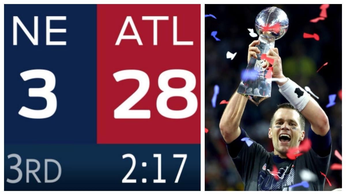 Atlanta kreeg de offense van de Patriots plots niet meer van het veld. En het lukte de Falcons ook niet meer om bij balbezit het veld over te steken. Bij een achterstand van 25 punten vonden de New England Patriots hun tweede adem. Ze draaiden de Super Bowl helemaal op zijn kop. Uiteindelijk won New England in overtime met 34-28. Een nederlaag die Atlanta tot vandaag achtervolgt.